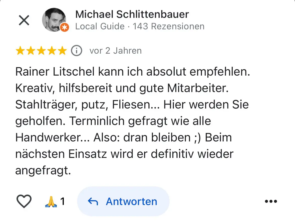 Die Sanierung kann in etwa 4-6 Wochen starten. Da wir das ganze Jahr über arbeiten und keinen festen Betriebsurlaub haben, sind wir flexibel. Sie können Ihr bevorzugtes Umbau-Datum auswählen. Klicken Sie dafür Hier